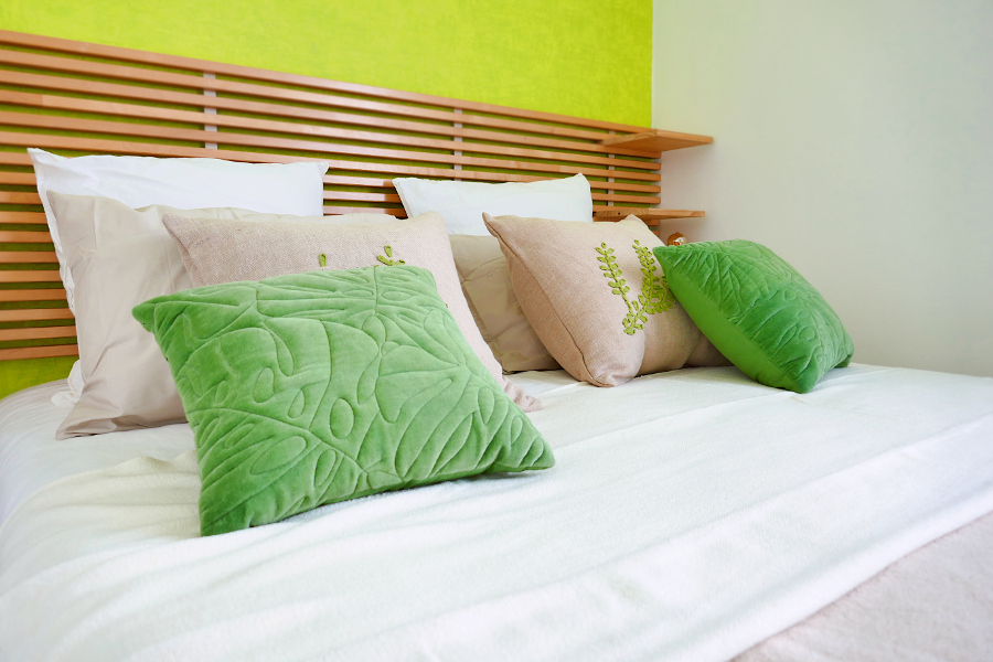 Das erste Schlafzimmer verfügt über ein 160 x 200 cm großes Doppelbett, Waschbecken, Wandkleiderschrank und Kleiderhakenleiste. Im Zimmer nebenan stehen zwei Einzelbetten, die auch als einem 180 x 200 cm großes Bett zusammengestellt werden können. Außerdem verfügt es ebenfalls über einen Wandkleiderschrank und ein eigenes Handwaschbecken sowie über eine höhe Kommode.
